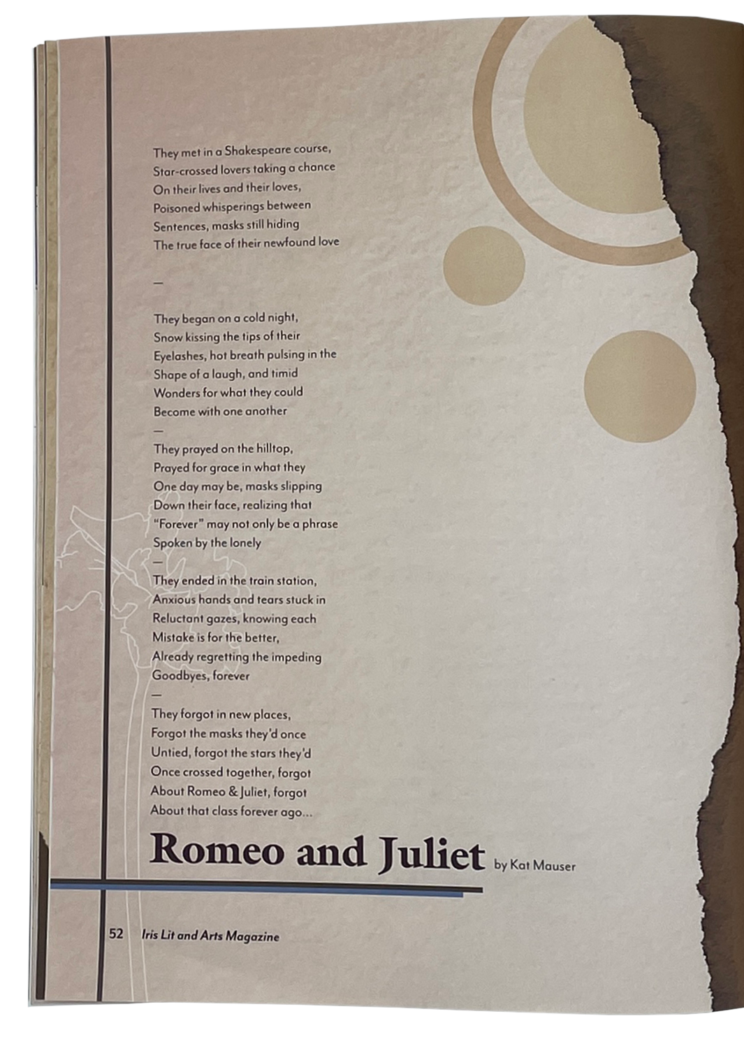 Iris is a collaborative, student-run literature and art magazine at James Madison University.
